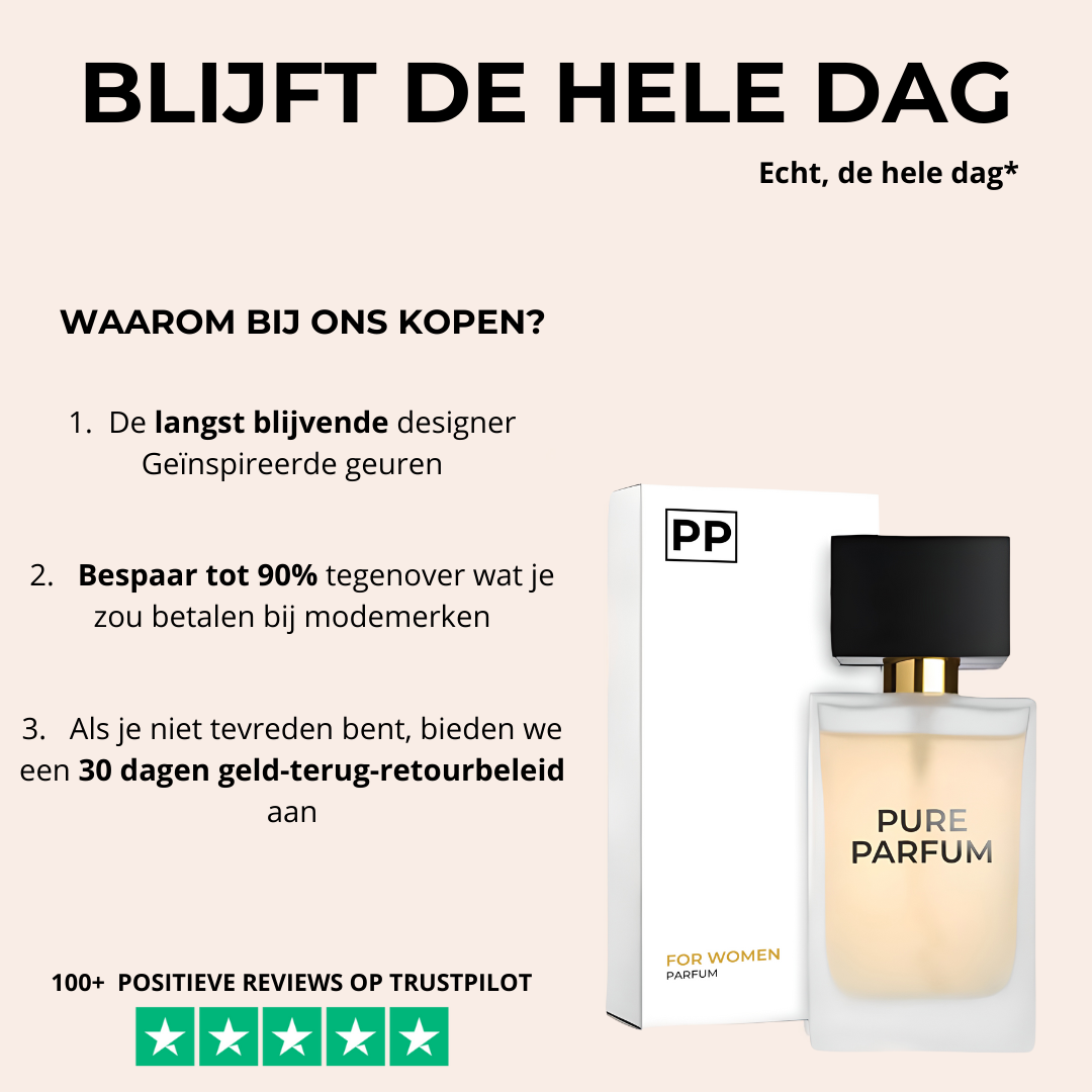 Onze producten zijn puur geïnspireerd op bestaande geuren en zijn niet ‘identiek’ aan enig ander parfum of origineel product. Pure Parfum dient niet te worden verward met originele merken en wij hebben geen enkele affiliatie met de fabrikanten van deze niet-genoemde designermerken.